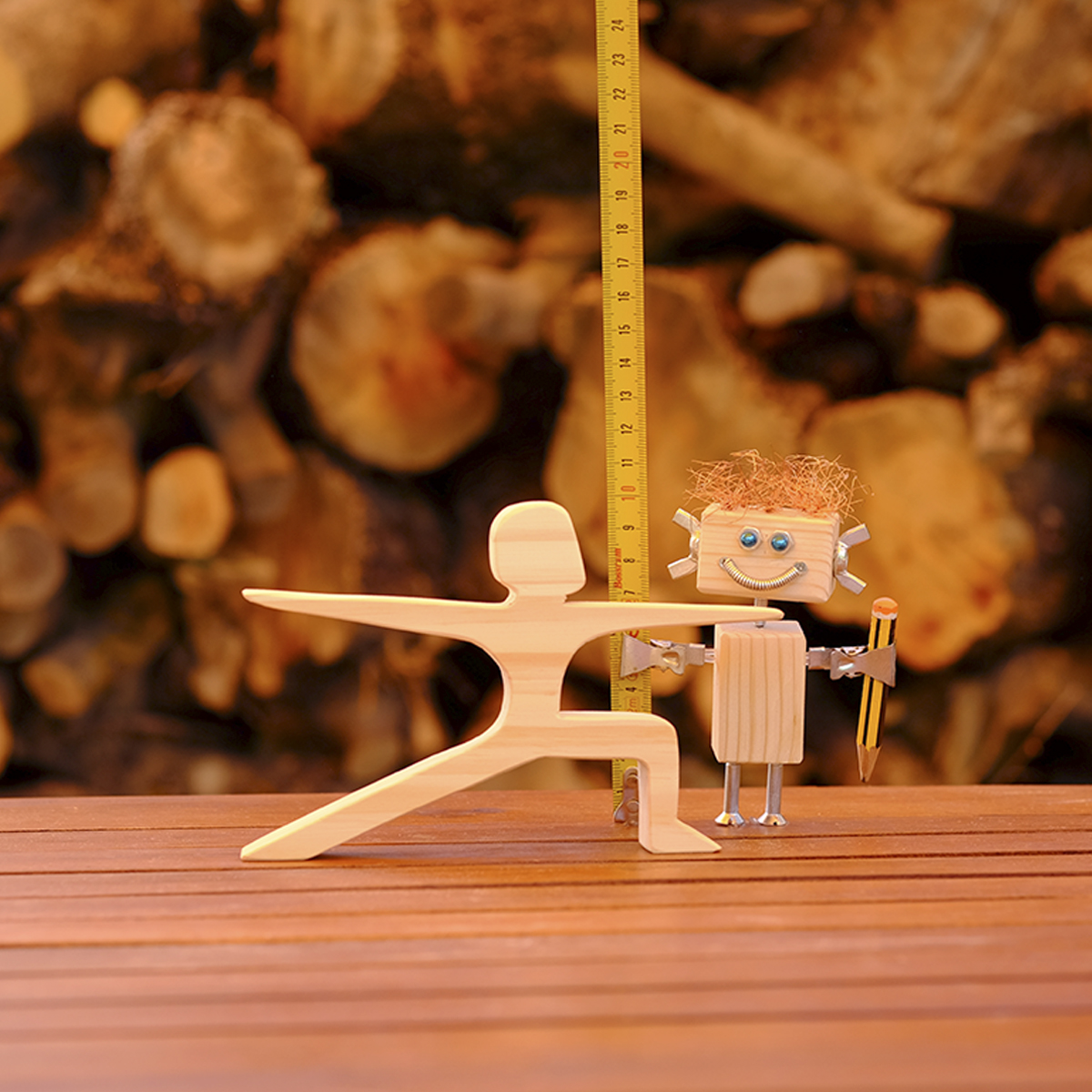 Figura de la asana «el guerrero II», elaborada en madera de forma totalmente artesanal.