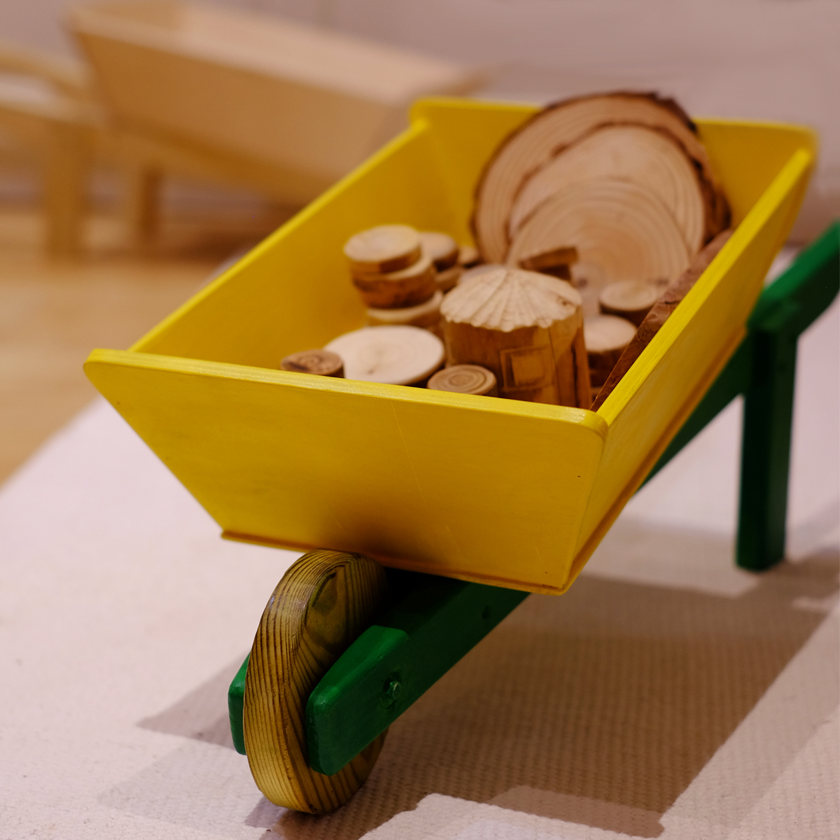 También la carretilla sirve para que los pequeños puedan cargar y llevar de un sitio a otro sus juguetes, acarrear cosas del jardín, ayudar en el huerto… y si los niños se cansan de jugar con ella, es un precioso adorno dentro de casa o en el exterior para colocar macetas o algún adorno 😉