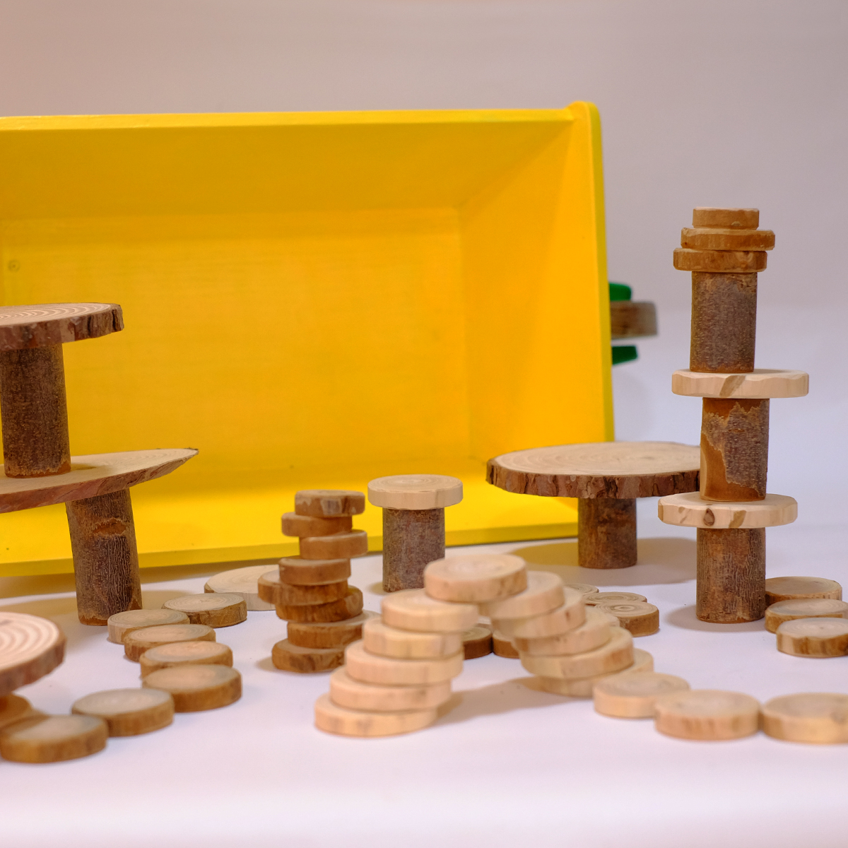 - 10 troncos de madera (4 troncos de 7 cm alto y 6 troncos de 7 cm de alto).