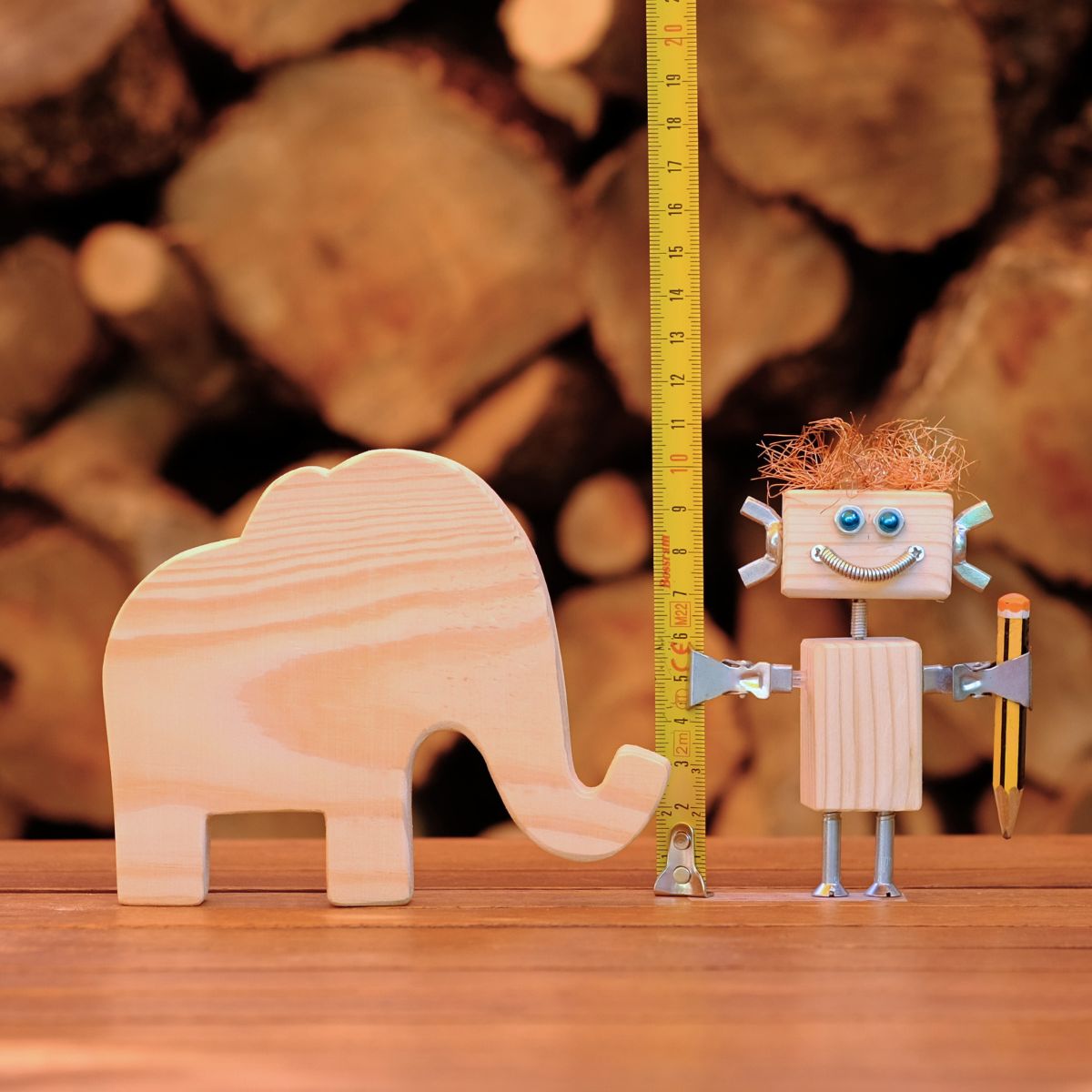 - La silueta de elefante es para niños de cualquier edad, puesto que es una pieza segura: es una figura de una sola pieza, de madera maciza de pino que no se ha sometido a ningún tratamiento ni revestimiento y no contiene ningún elemento que se pueda desprender.