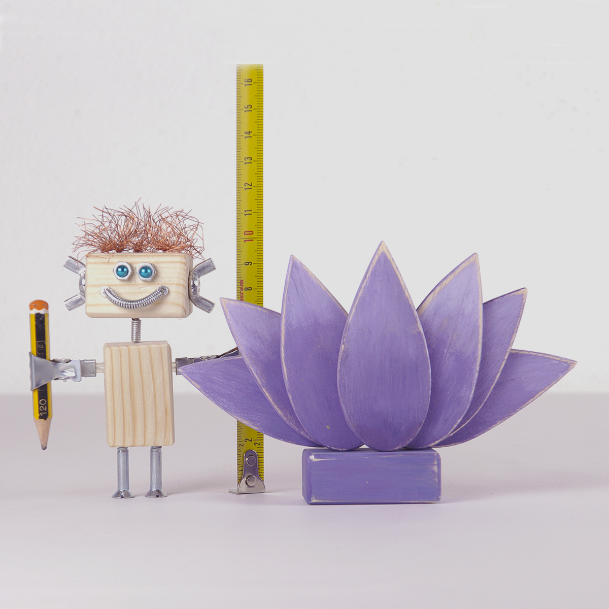 Nota: el robot medidor que aparece en las fotos no forma parte de la flor de loto, solo nos ayuda para mostrar la medida 😉