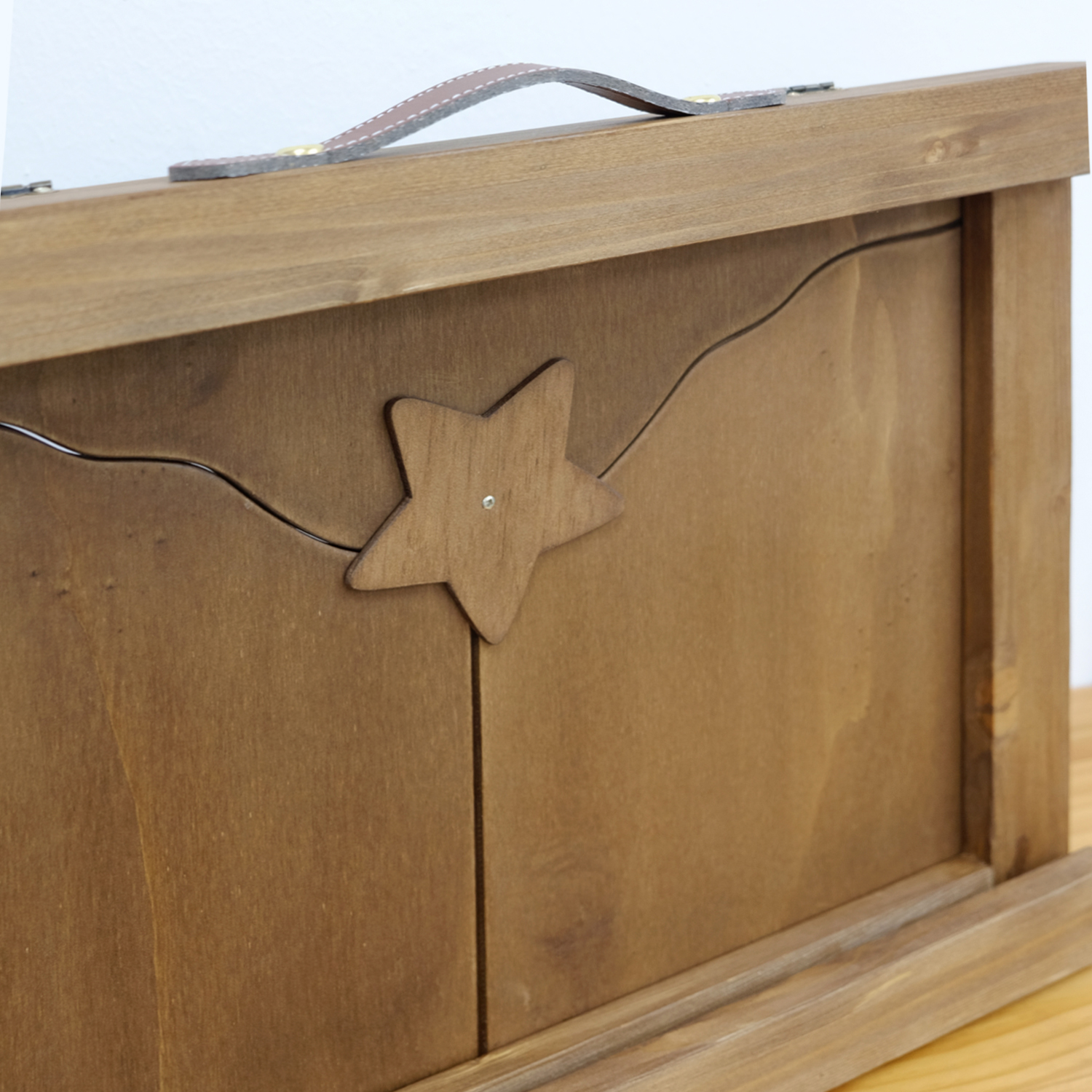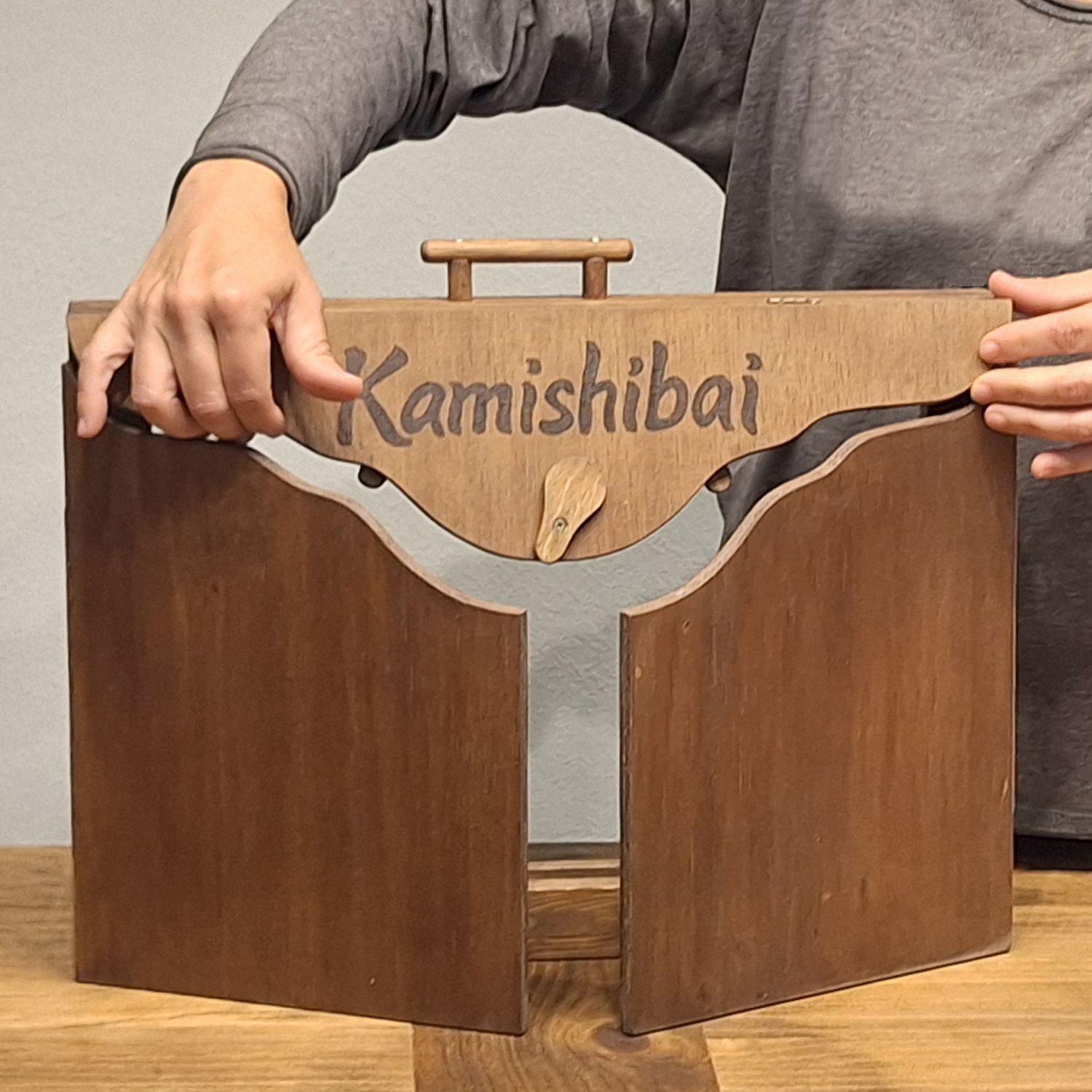 - Kamishibai A3 pirograbado, con la madera de color natural