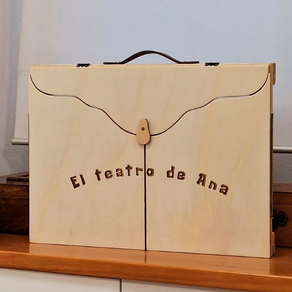 - Kamishibai A3, de madera teñida y personalizado (mediante pirograbado).
