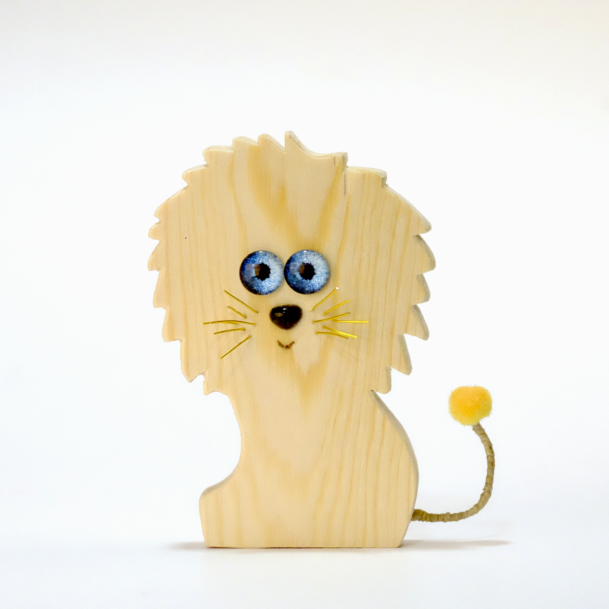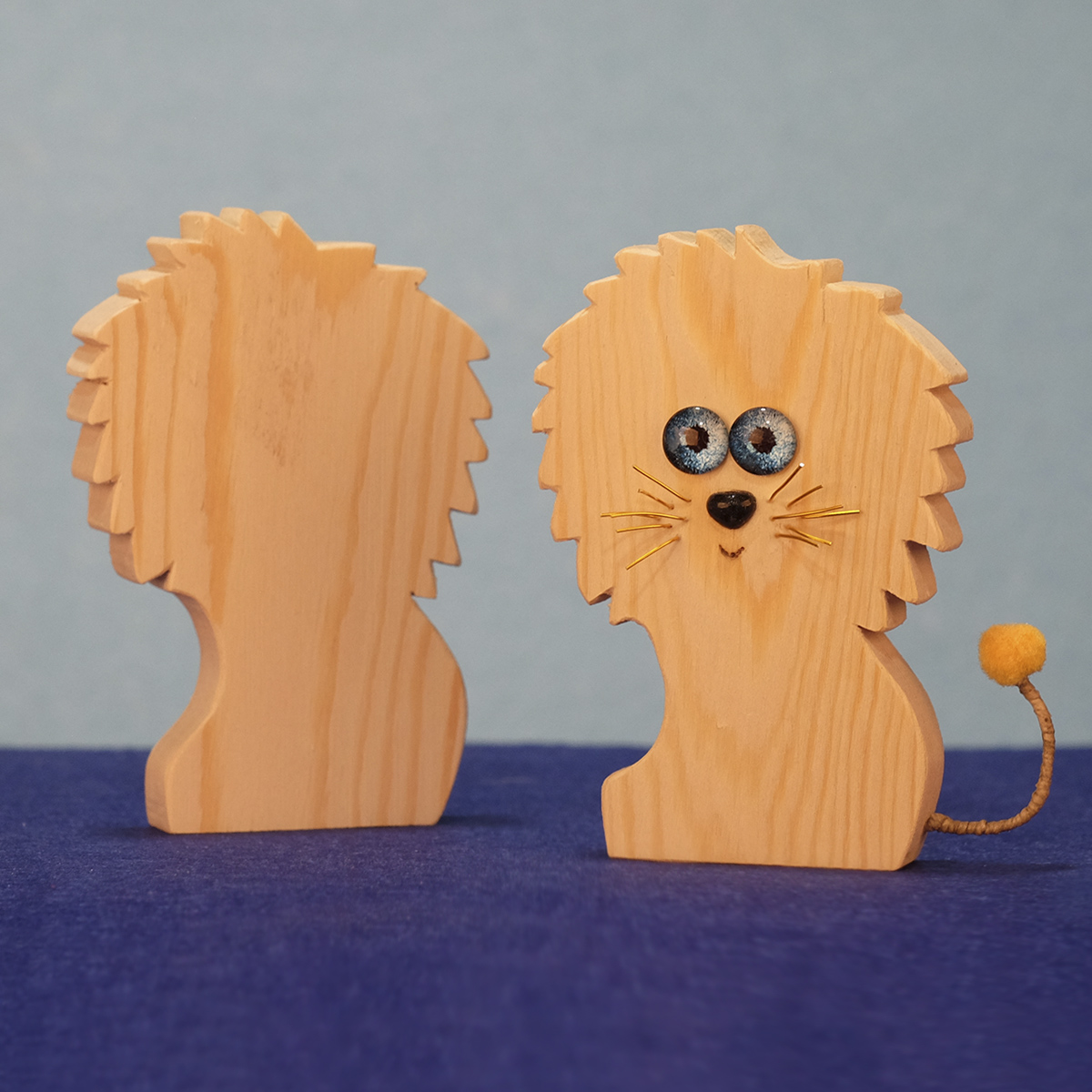 - La silueta con ojos, hocico, bigotes y cola, para niños mayores o para adultos (legalmente se considera que los juguetes con piezas que se puedan separar no son aptos para niños menores de 3 años, pero preferimos considerar que por el tipo de piezas de este león que no es apto para niños menores de 5 años).