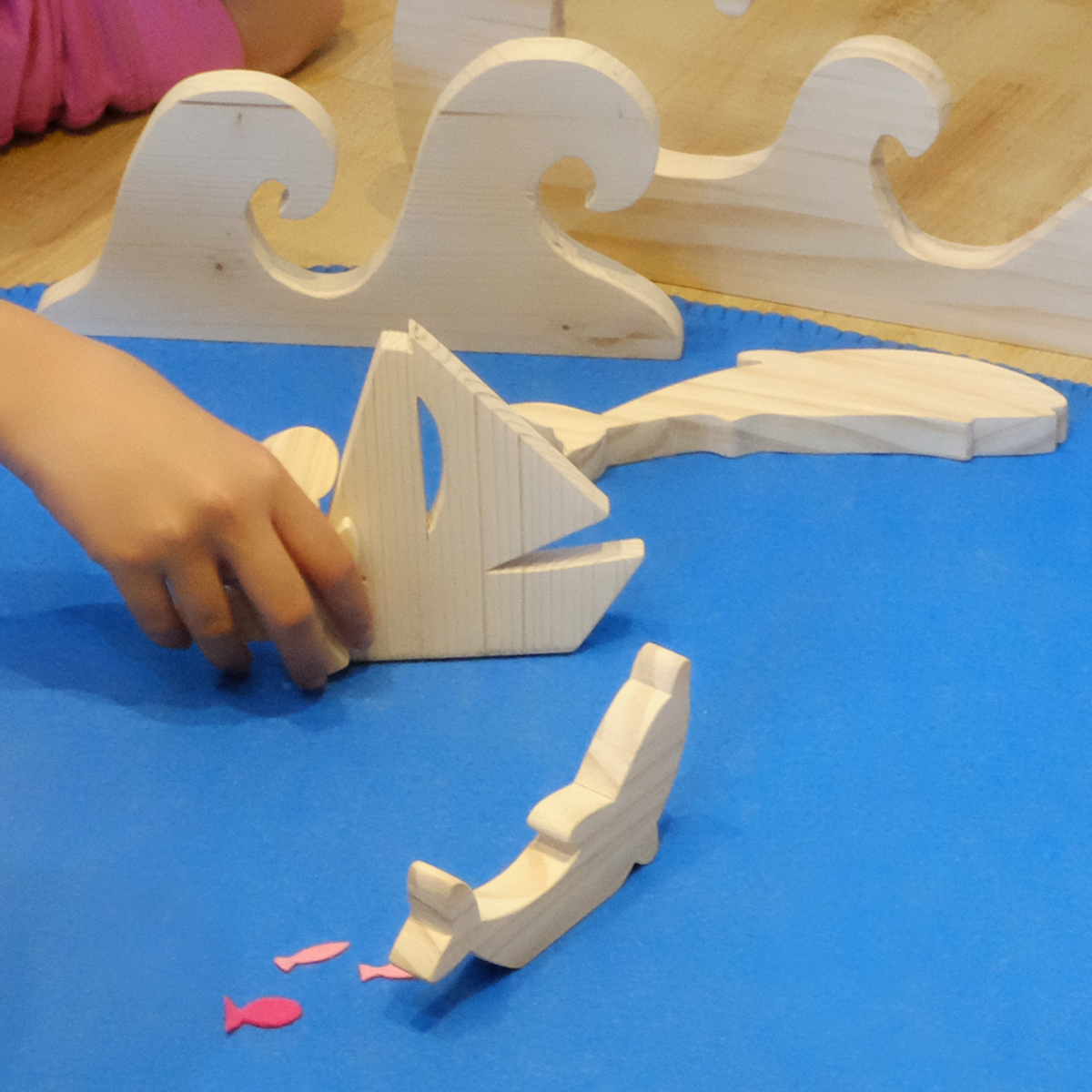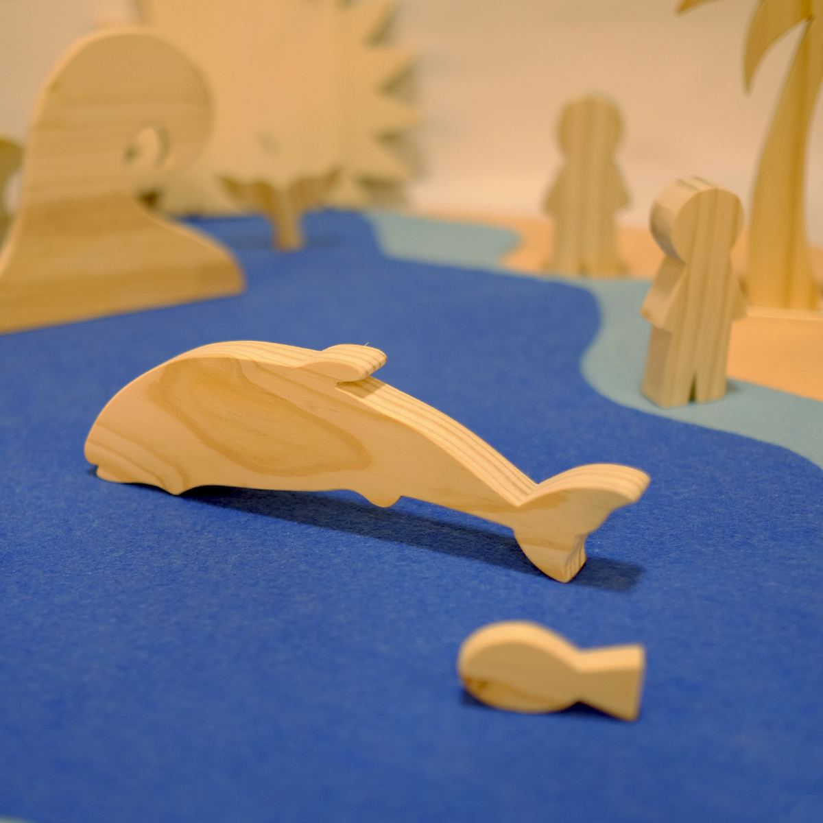 - 3 animales: 1 delfín, 1 ballena y 1 cola de ballena.