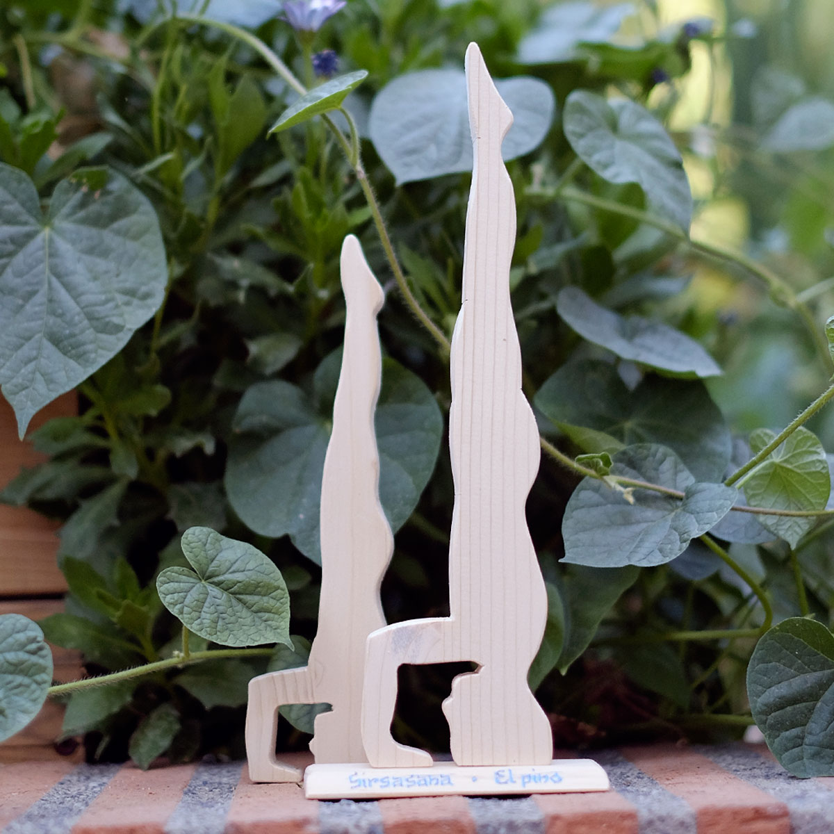 Sirsasana para nosotros es conocido como la postura de yoga «El Pino». Se trata de una popular asana de equilibrio sobre la cabeza, que hemos reproducido fielmente en esta figura de madera artesanal, sobre base de madera donde se inscribe su nombre en castellano y en sánscrito.