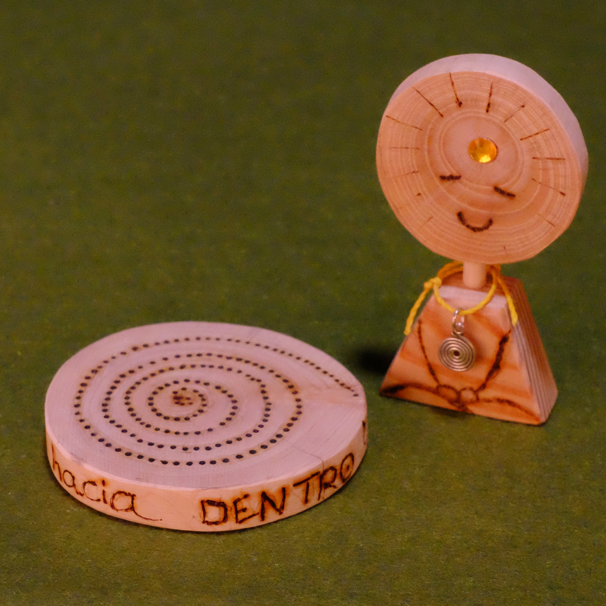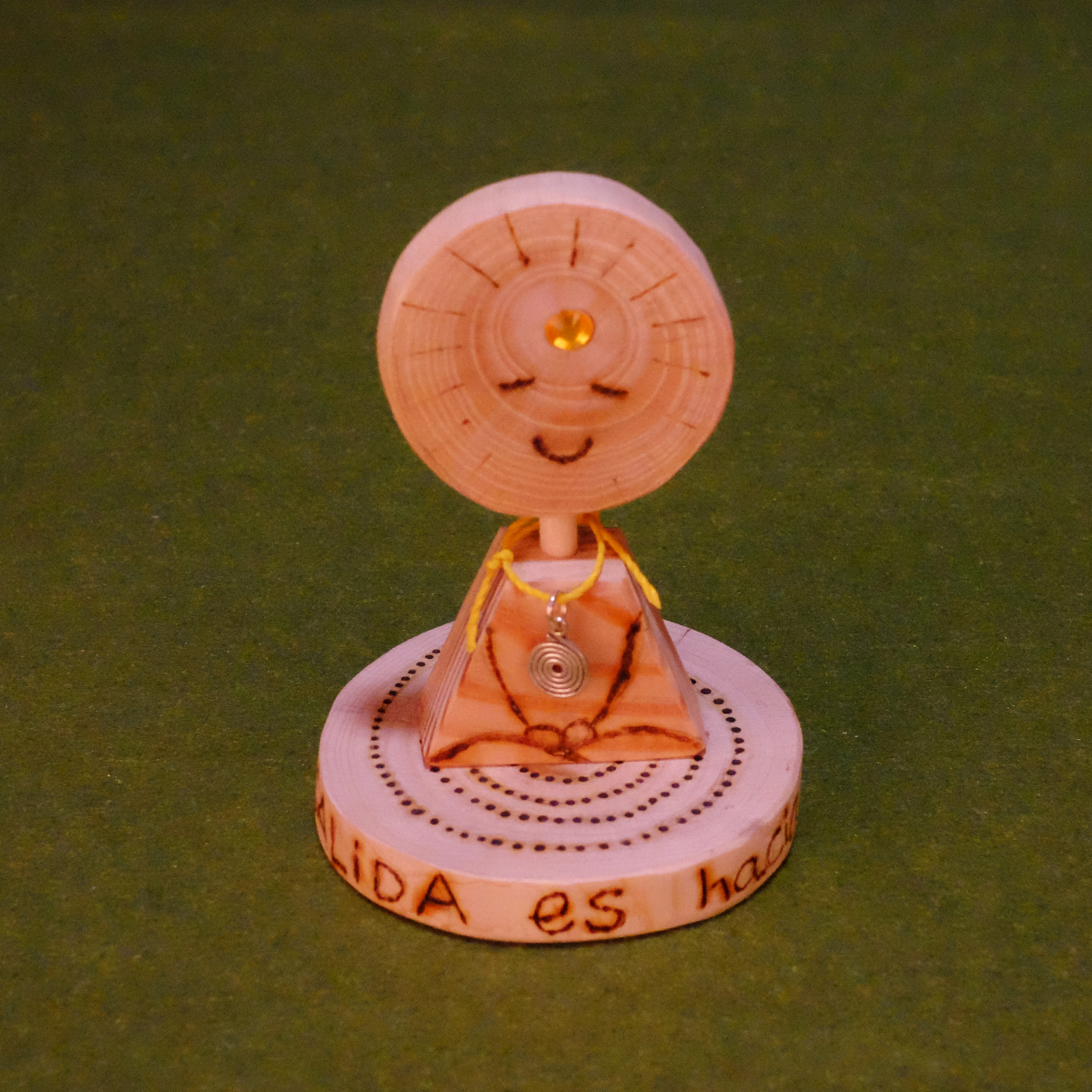 «Meditando» es uno de esos simpáticos personajes que aparecen en Paloverso. Es un pequeño ser con un tercer ojo bien desarrollado, un símbolo espiral colgado del cuello y está sentado sobre una base que recuerda «La salida es hacia dentro«. Porque si meditas, tienes esa certeza de que en tu interior está todo lo que necesitas y todo lo que te dará la libertad. Conquistar ese interior es la tarea que uno se propone, sentándose día tras día a observar «hacia dentro» la mente, sus reacciones, mecanismos automáticos y todas las idas y venidas de esa red neuronal por defecto que queremos desactivar.