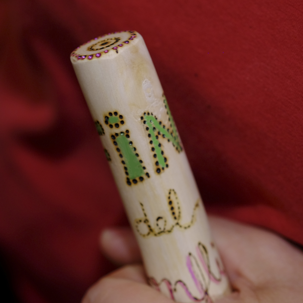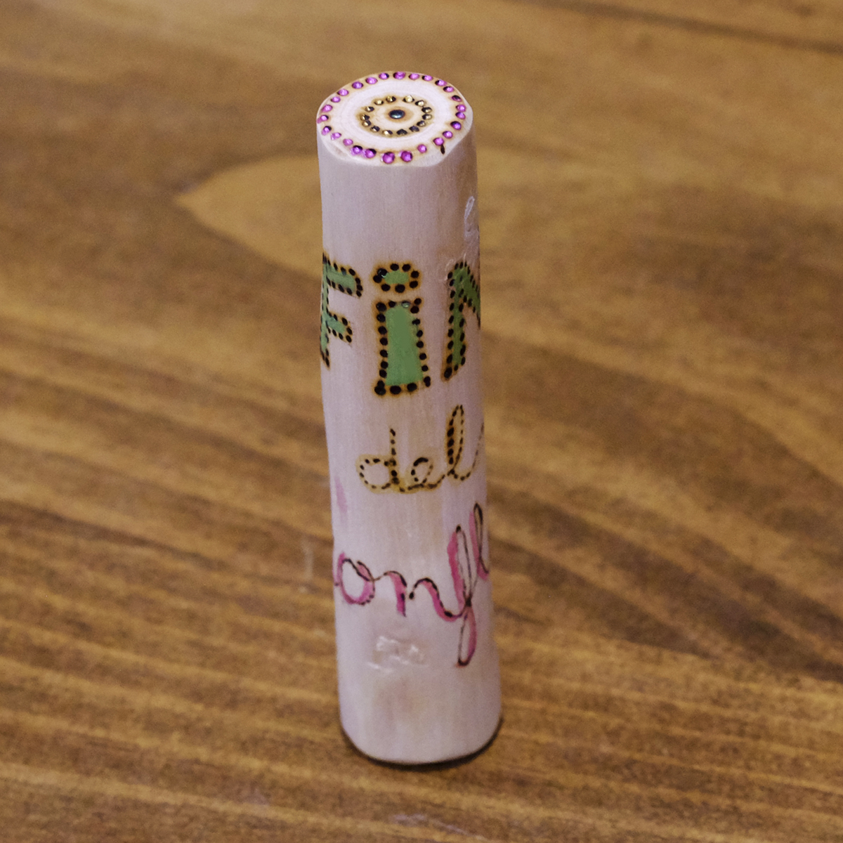 Si has vivido un enfrentamiento y ya no quieres que la tensión continúe: díselo con un toque de simpatía. El tótem de madera «FIN DEL CONFLICTO» lleva el mensaje por ti, lo dice de forma cariñosa, con sus letras informales y los colores verde esperanza y rosa, color de la dulzura. Se trata de una ramita (11 cm alto y 2 cm diámetro) que hemos secado y pulido y sobre la que hemos pirograbado el mensaje. Luego el color se lo hemos dado con acuarelas de tonos iridiscentes, haciéndolo más luminoso. Unos corazones palpitan bajo el mensaje, ya que solo desde el corazón se da la verdadera reconciliación y perdón. Si sientes que ha llegado el fin del conflicto, díselo con gracia 😉