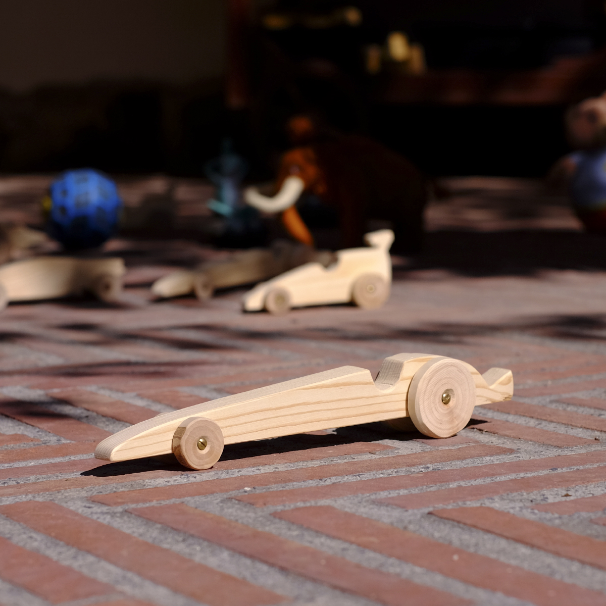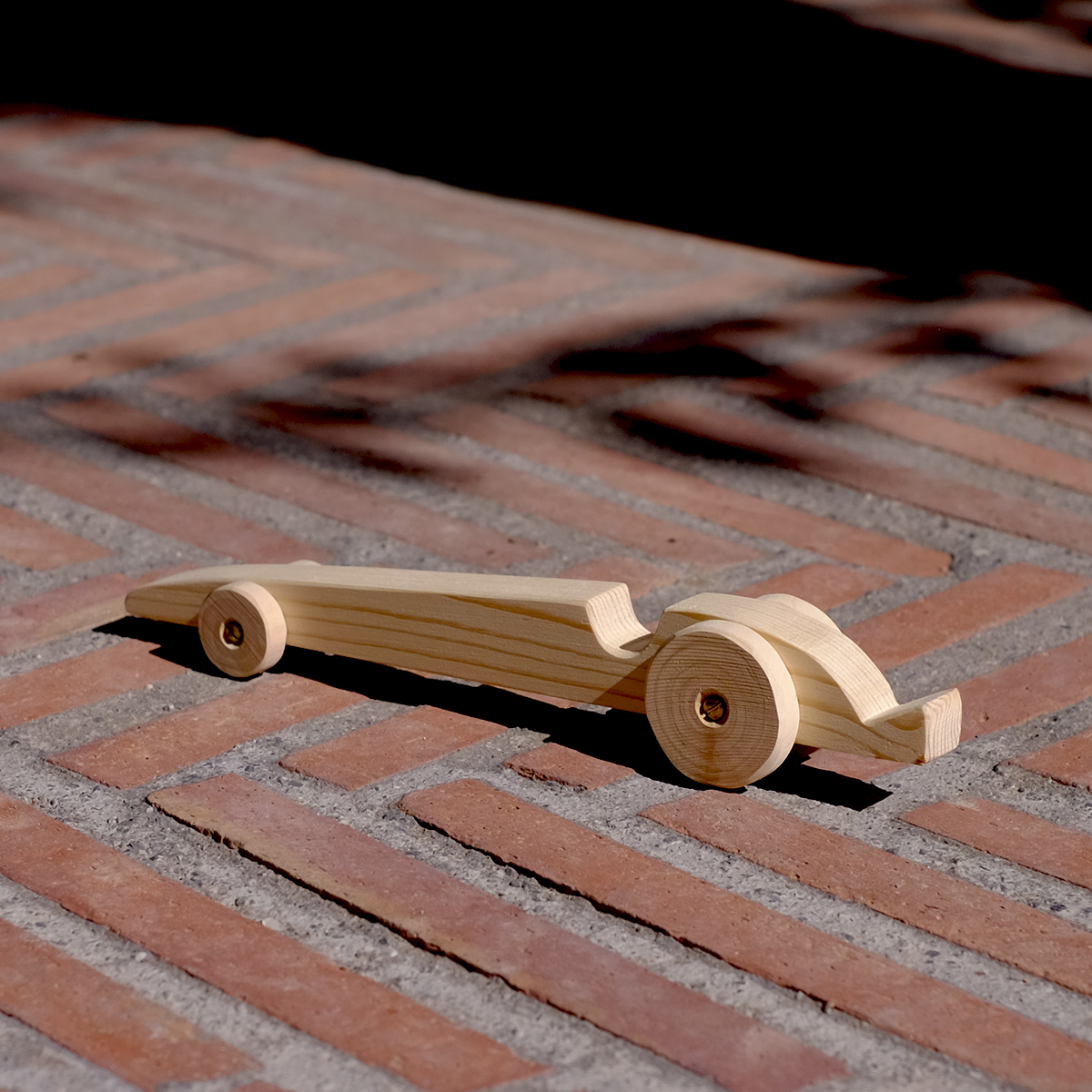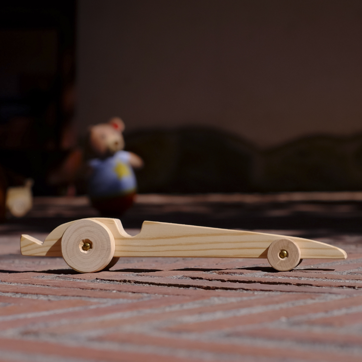 Este superbólido de madera es uno de los coches veloces de Paloverso, junto con el bólido y el de carreras, con sus líneas aerodinámicas.